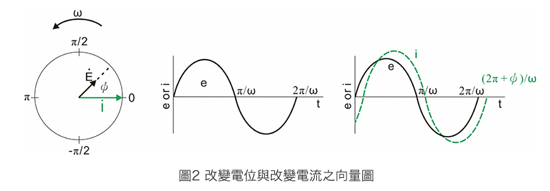 電流向量與電位向量會相差一相位角(phase angle, ψ),如圖2所示。
